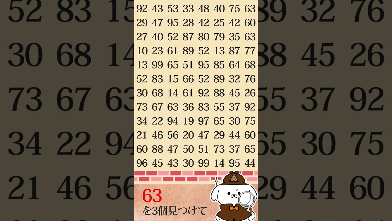 「63」を探せ!!高齢者向け脳トレ間違い探しゲーム