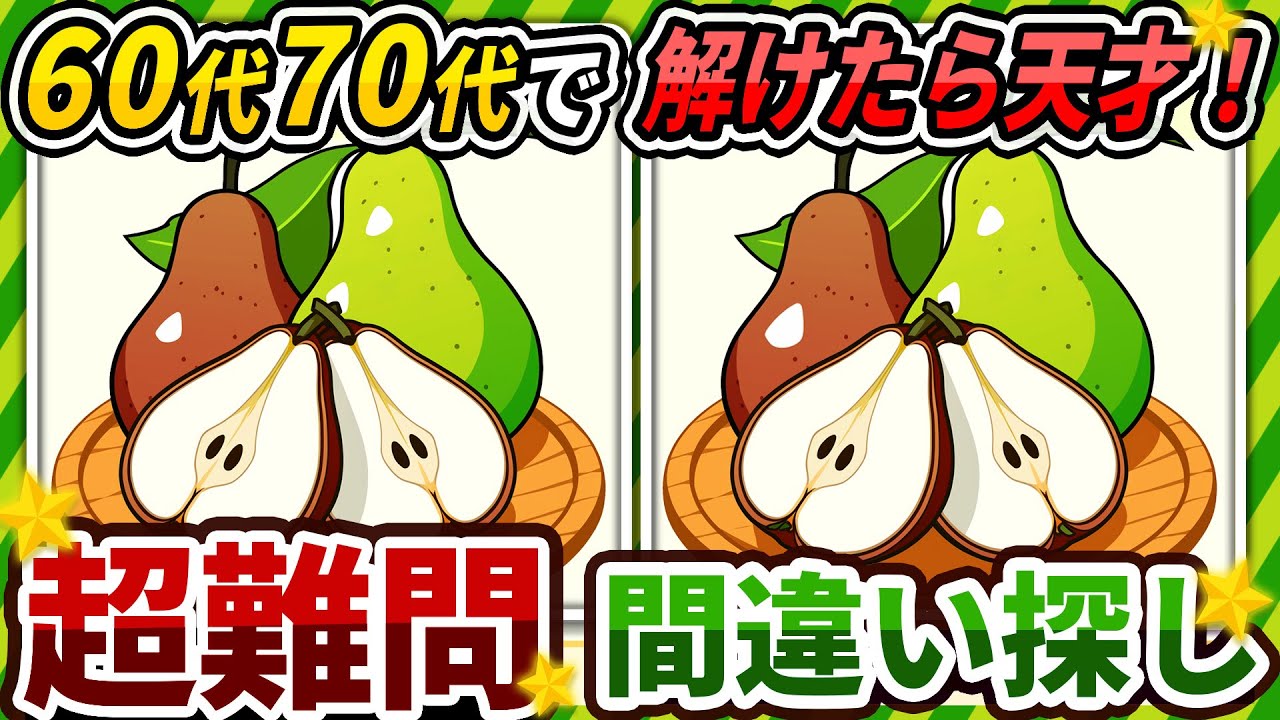 【間違い探しクイズ】⚠️むずかしいラフランスのイラスト編!脳活&脳トレにおススメ無料ゲーム【アハ体験有り】#341