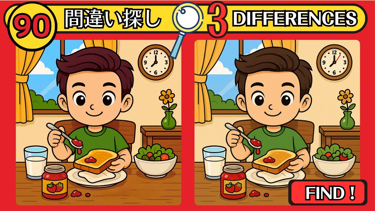 【3か所×90秒】朝食パンとジャムの間違い探し #145 (CC) 🔈
