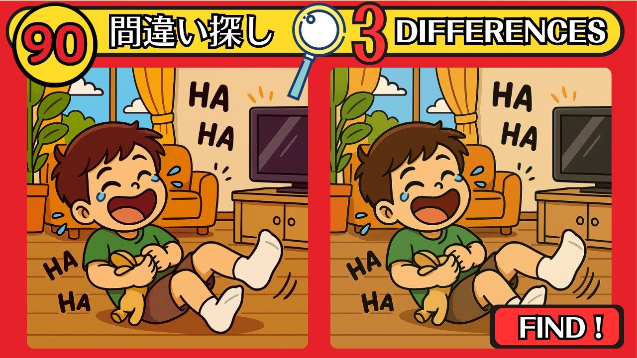 【3か所×90秒】笑い転げる少年の間違い探し #147 (CC) 🔈