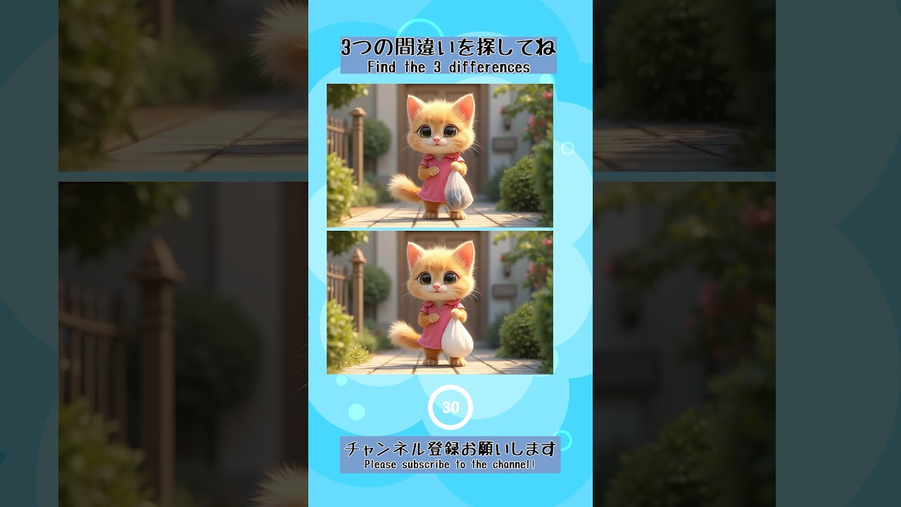 【間違い探し】キュートな猫の間違い探しNo.207 脳トレ.集中力.IQアップ 他チャンネルの間違い探し Twitter Facebook はてブ Pocket LINE コピー 2025.10.01 2025.09.30 猫に癒されながら脳トレタイム…全部見つけられる? 可愛さに油断してると間違いが見つからないぞ!? 99%が間違える!?猫好き泣かせの間違い探し🐾 #猫の間違い探し #脳のトレーニング #short