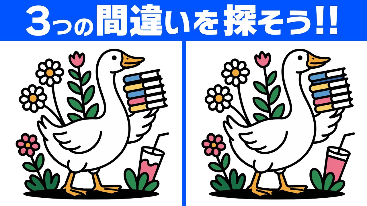 左右のイラストから違うところを【3か所】探してください
