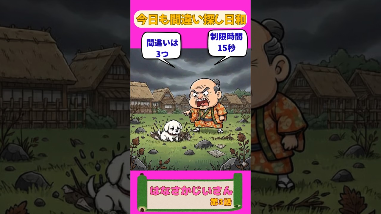 【間違い探し日和】はなさかじいさん!第3話!3つの間違いを探せ!ぴよっと脳トレ✨#脳トレ#昔話#まちがいさがし #間違い探し#こども#高齢者 #むかしばなし#はなさかじいさん#親子 #クイズ#知育