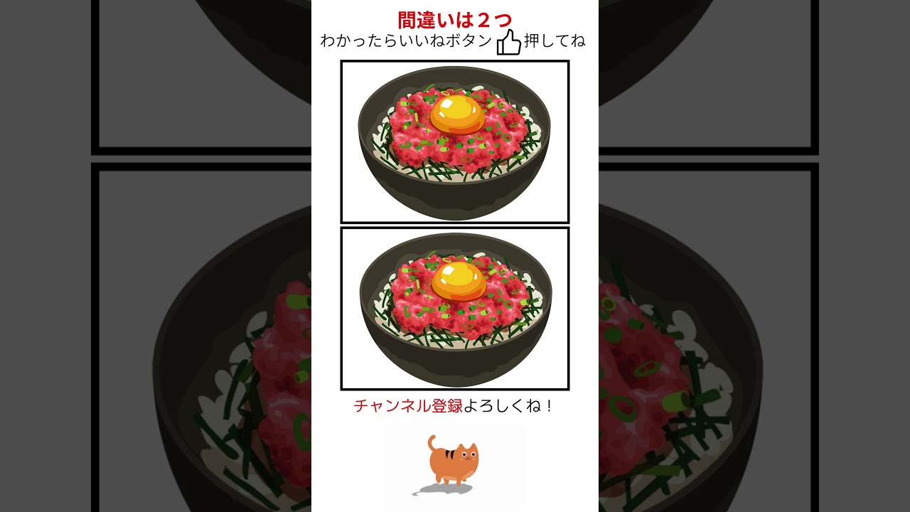 【まちがいさがし61 ネギトロ丼】#shorts #脳トレ #間違い探し 他チャンネルの間違い探し Twitter Facebook はてブ Pocket LINE コピー 2025.10.07 2025.10.06 よ〜く見ると…あれ?何かちがう? 上下のイラストを見比べて、間違いを見つけてみよう! 📺 チャンネル登録&いいねもお忘れなく! #間違い探し #脳トレ #高齢者 #60代 #70代 #認知症予防