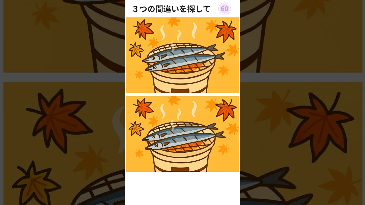 60秒で見つけた数をコメントで教えてください。#脳トレ #間違い探し #秋の味覚