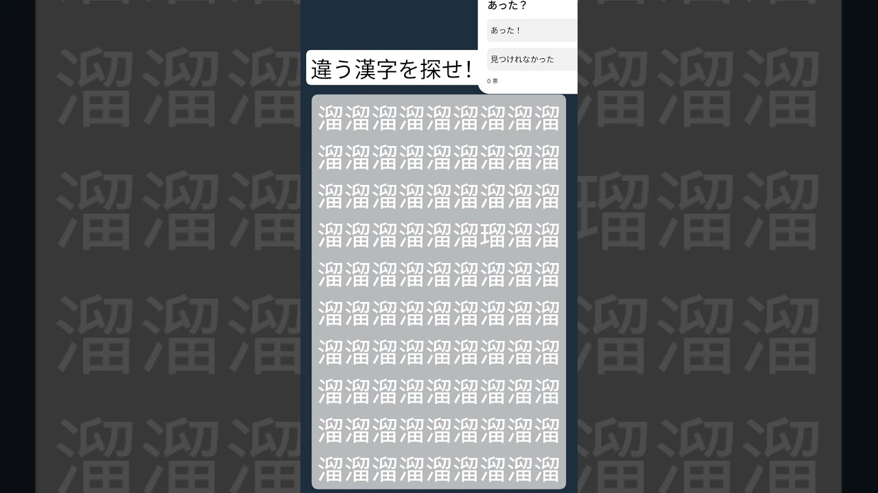 違う漢字を探せ #まちがいさがし #目指せ100人 #漢字間違い探し #ちゃんねる登録お願いします 他チャンネルの間違い探し Twitter Facebook はてブ Pocket LINE コピー 2025.10.11 2025.10.10