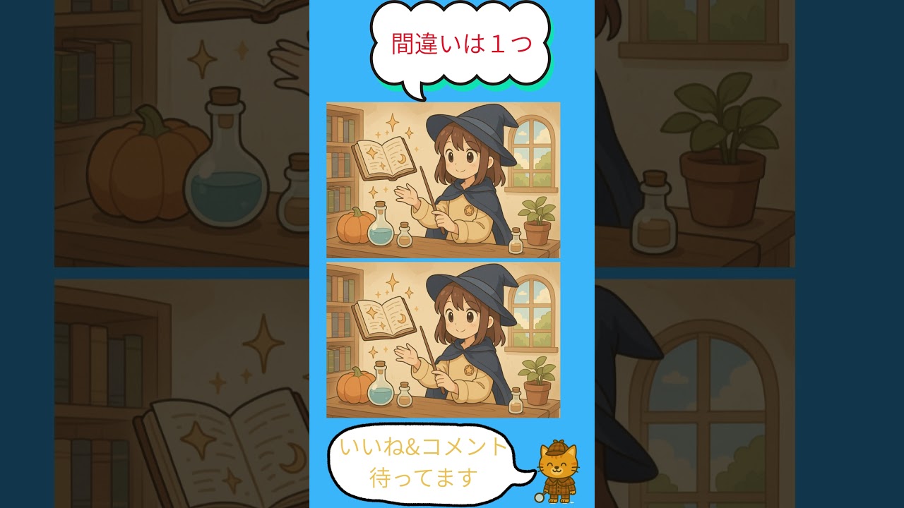 魔女の間違い探し|1つ見つけられる?[毎日投稿][脳トレ] 他チャンネルの間違い探し Twitter Facebook はてブ Pocket LINE コピー 2025.10.15 2025.10.14 毎日脳トレ!トラッキー!です。 AIが作る間違い探し・脳トレ動画!大人も子どもも楽しめる無料クイズを毎日投稿しています。 #shorts