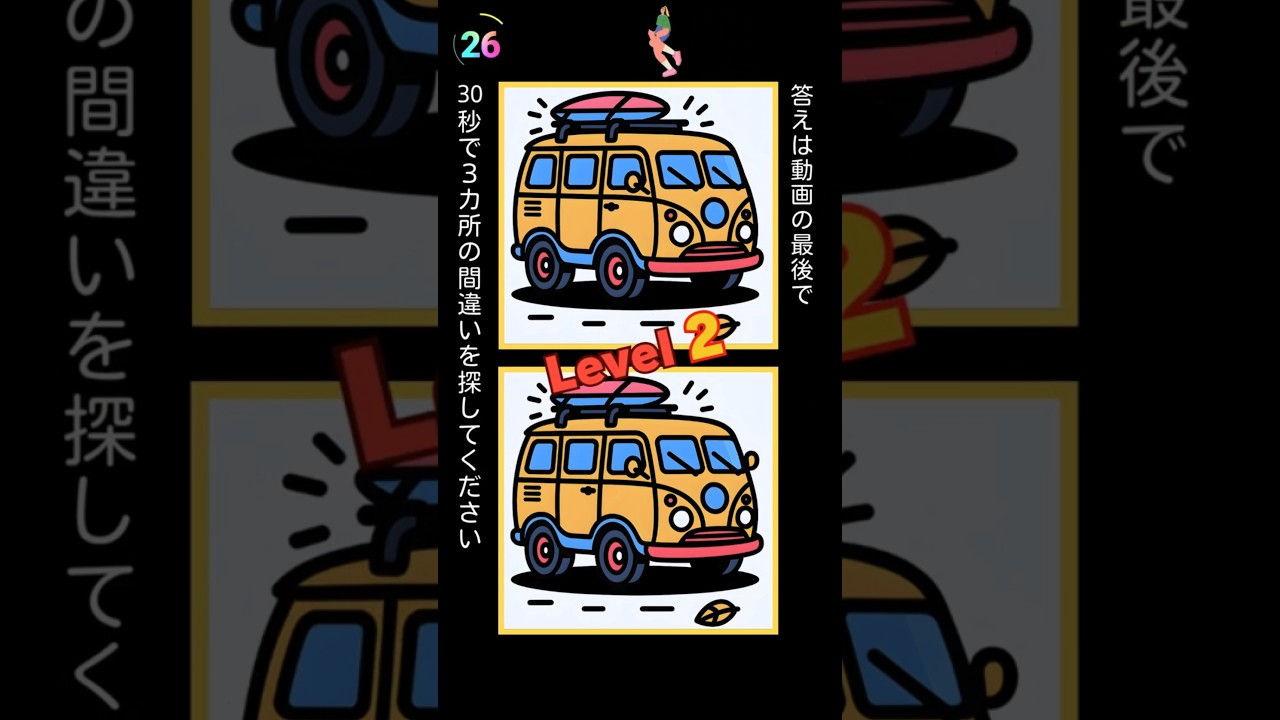 『間違い探し』s147 😉あなたの観察力を診断! 他チャンネルの間違い探し Twitter Facebook はてブ Pocket LINE コピー 2025.10.15 2025.10.14 間違い探しは脳を活性化し、記憶力や集中力をアップさせる効果があります。 さあ、一緒に脳をフル回転させて、今日も楽しくチャレンジしましょう! ▼チャンネル登録まだの方は登録お願いします😊 https://www.youtube.com/channel/UCbEyvDbKI8EuYXxT-kT8ARg ※この動画のイラストは、AI技術を活用して特別にデザインしました。細かい違いを見つけられるか挑戦してみてください!