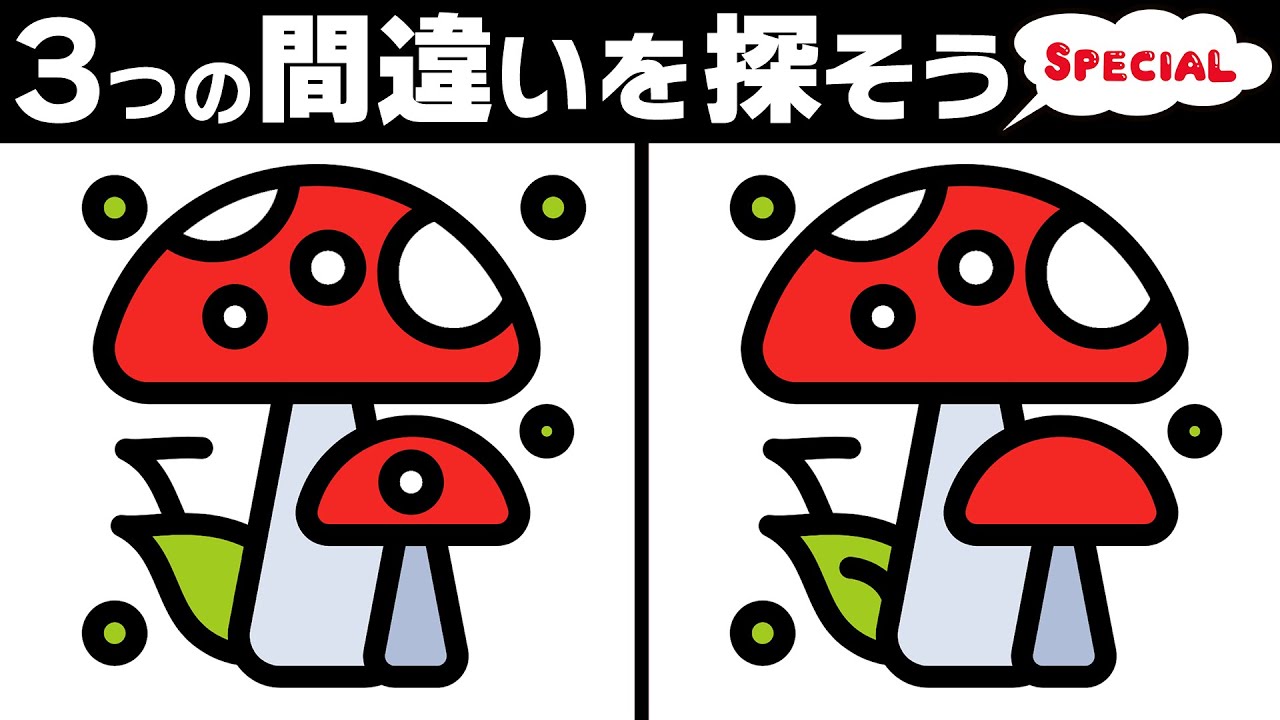 【きのこの日スペシャル】シニア脳トレ間違い探し!3問チャレンジで楽しく脳をリフレッシュ!無料で挑戦!