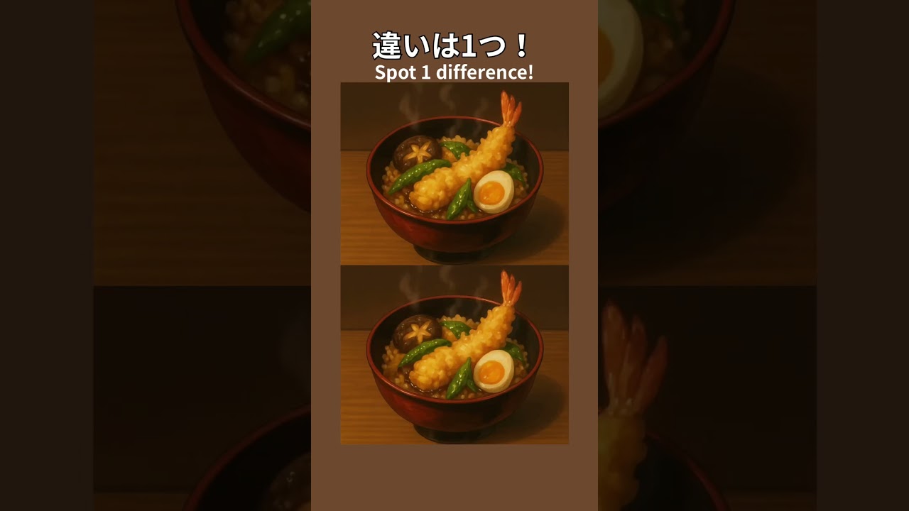 【海老天丼】違いは1つだけ!🍤 #間違い探し #昭和レトロ#spotthedifference 他チャンネルの間違い探し Twitter Facebook はてブ Pocket LINE コピー 2025.10.16 2025.10.15 ぷりぷり海老天…どこが違うか分かる?🤭 気づいた人はコメントで教えてね🍤✨ Can you spot the one difference in this tempura rice bowl? If you enjoyed it, like & follow for more! #レトログルメ #海老天丼 #脳トレ #tempurabowl#findthedifference