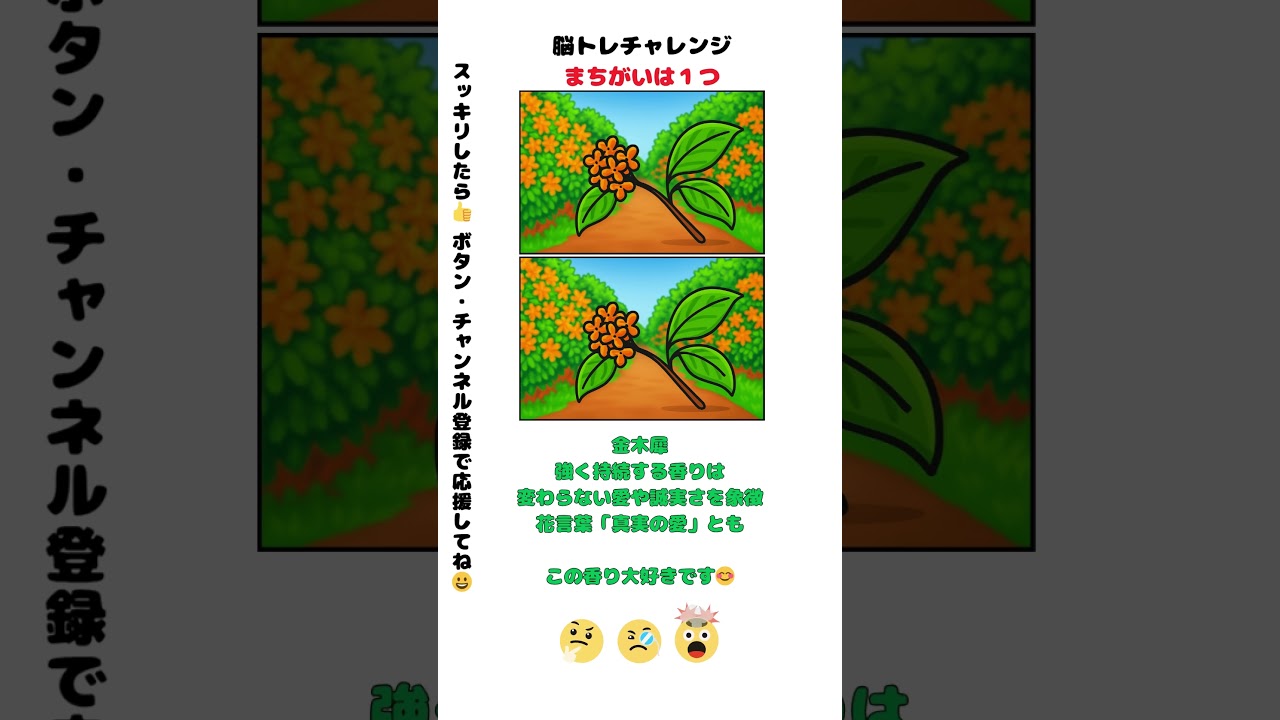 金木犀のまちがい探し #脳トレ #間違い探し #金木犀 #キンモクセイ #植物 #クイズ #findthedifference #quiz #quiztime #学ぶ今