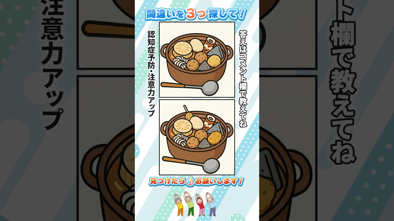 間違い探しで認知症予防!集中力と注意力アップ!#間違い探し #脳トレ #findthedifference 他チャンネルの間違い探し Twitter Facebook はてブ Pocket LINE コピー 2025.10.19 2025.10.18 答えはコメントで教えてね! ▶️ 楽しんでもらえましたら、イイネ👍チャンネル登録よろしくお願いします! VOICEVOX:ずんだもん