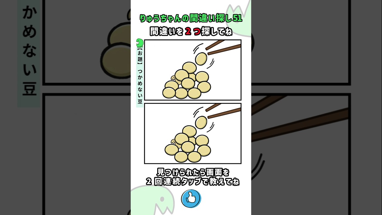 りゅうちゃんの間違い探し51【初級】 #間違い探し #脳トレ #豆