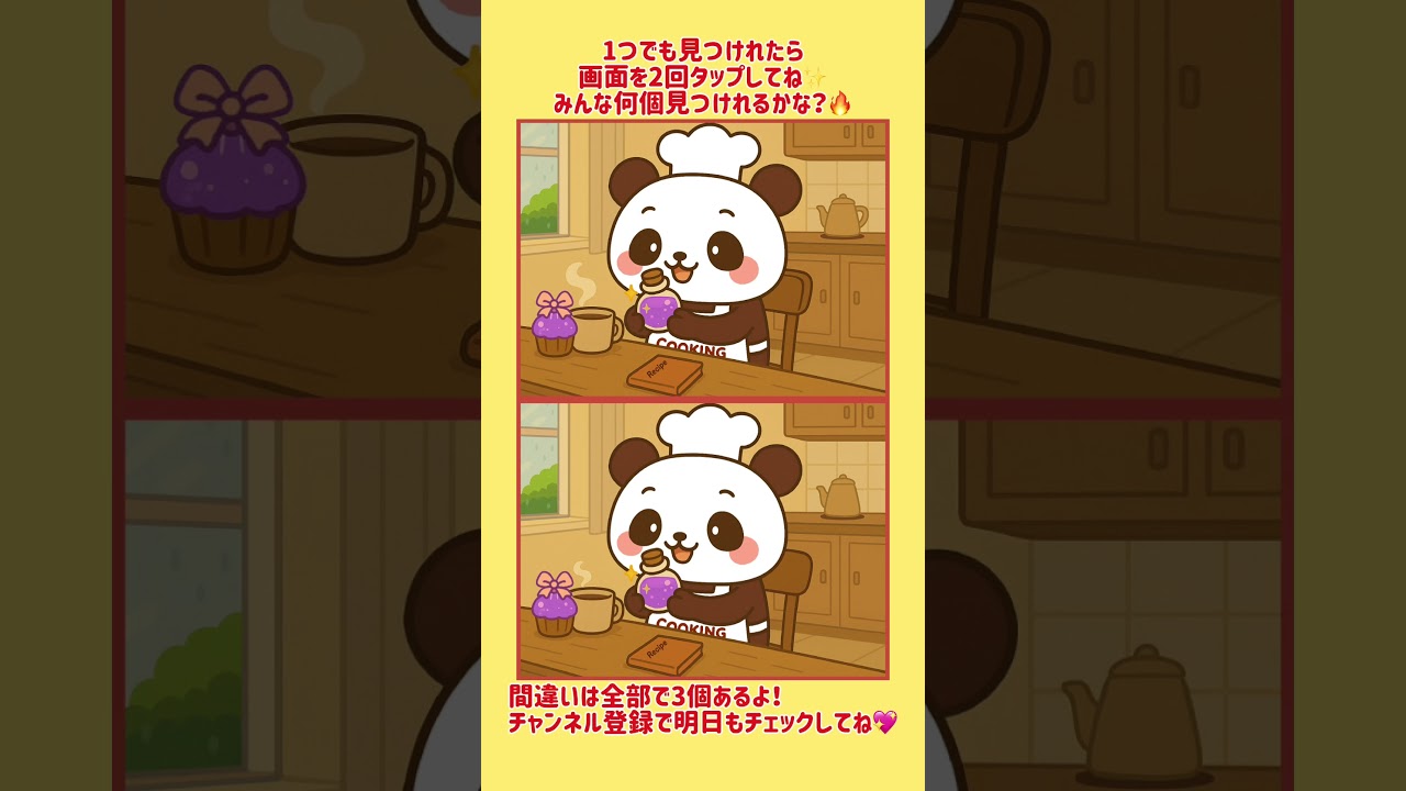 クッキングパンダの間違い探し #80|これ・・・使ってもいいかな? #間違い探し #脳トレ #シニア #クイズ #パズル #パンダ #60代 #panda #braintraining #shorts