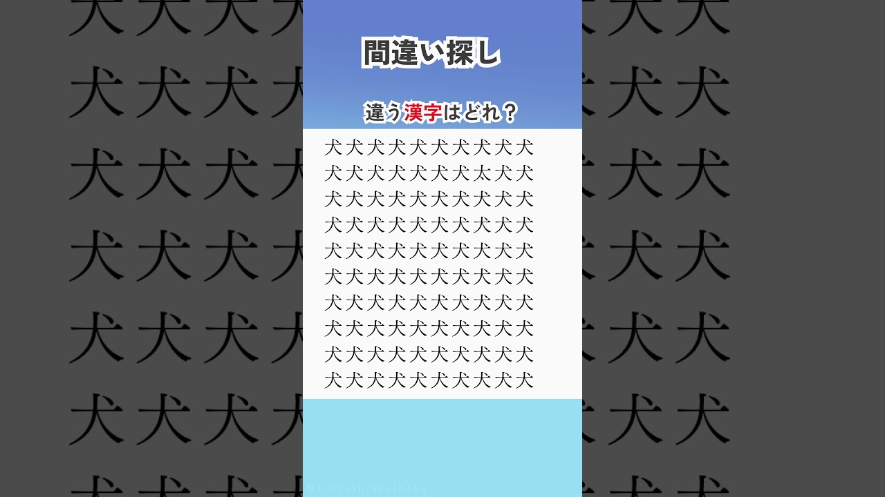 間違い探し 違う漢字はどれ #shorts #脳トレ #間違い探し #クイズ 他チャンネルの間違い探し Twitter Facebook はてブ Pocket LINE コピー 2025.10.22 2025.10.21 チャンネル登録はコチラ↓ https://www.youtube.com/channel/UCNfol7r3OKc5ps4GjSdJnhw 今日も元気にレッツ脳トレ‼