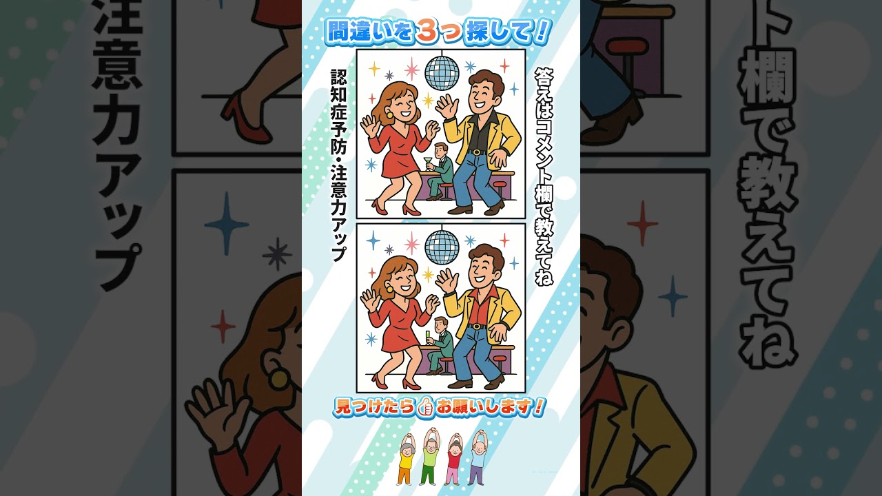 間違い探しで認知症予防!集中力と注意力アップ!#間違い探し #脳トレ #findthedifference 他チャンネルの間違い探し Twitter Facebook はてブ Pocket LINE コピー 2025.10.23 2025.10.22 答えはコメントで教えてね! ▶️ 楽しんでもらえましたら、イイネ👍チャンネル登録よろしくお願いします! VOICEVOX:ずんだもん