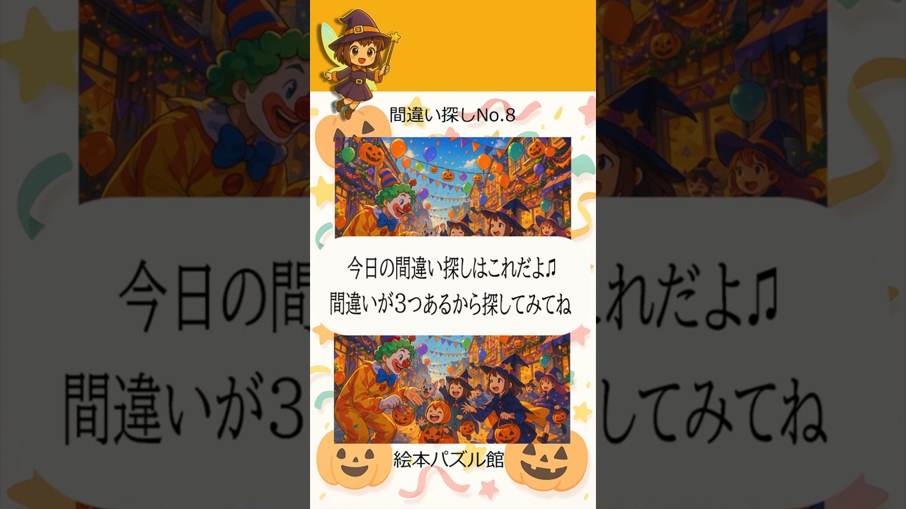 超難問【ハロウィン間違い探し🎃】3つの違いを見つけられるかな?🧙♀️✨#脳トレ #クイズ #間違い探し #ハロウィン #絵本パズル館 他チャンネルの間違い探し Twitter Facebook はてブ Pocket LINE コピー 2025.10.24 2025.10.23 テーマは「ハロウィンのおまつり」🍭✨ この動画の中には 3つの違い が隠れているよ! ぜ〜んぶ見つけられた人はコメントで教えてね🧙♀️💫