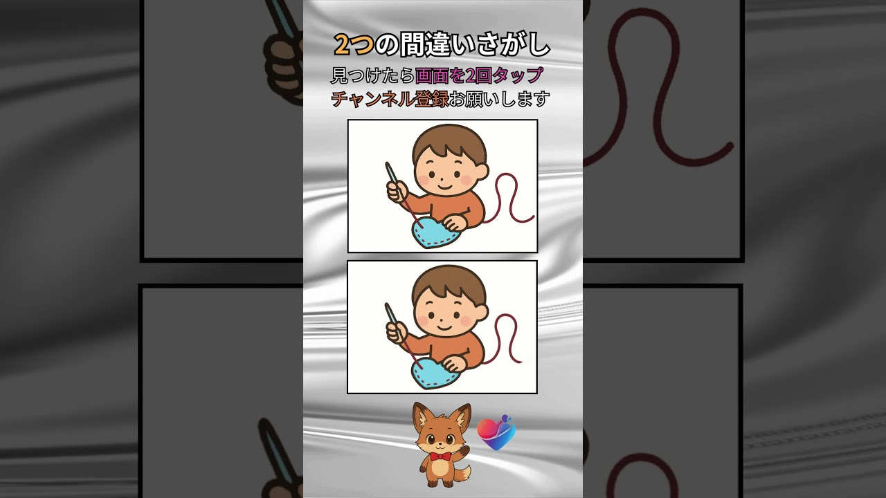 【間違い探し】脳がみるみる若返る!? お裁縫でハート作り #脳トレ 他チャンネルの間違い探し Twitter Facebook はてブ Pocket LINE コピー 2025.10.24 2025.10.23 いつも動画を見てくれてありがとうございます。 サイゼ感覚で間違いを探して、脳がみるみる若返る!?リフレッシュして頭をすっきりしよう! 正解がわかったら「いいね」お願いします! 見逃さないよう、チャンネル登録も忘れずに! #脳トレ #間違い探し #頭の体操 #気分転換 #脳の若返り #サイゼリヤ #サイゼ #お裁縫 #ハート #縫い物