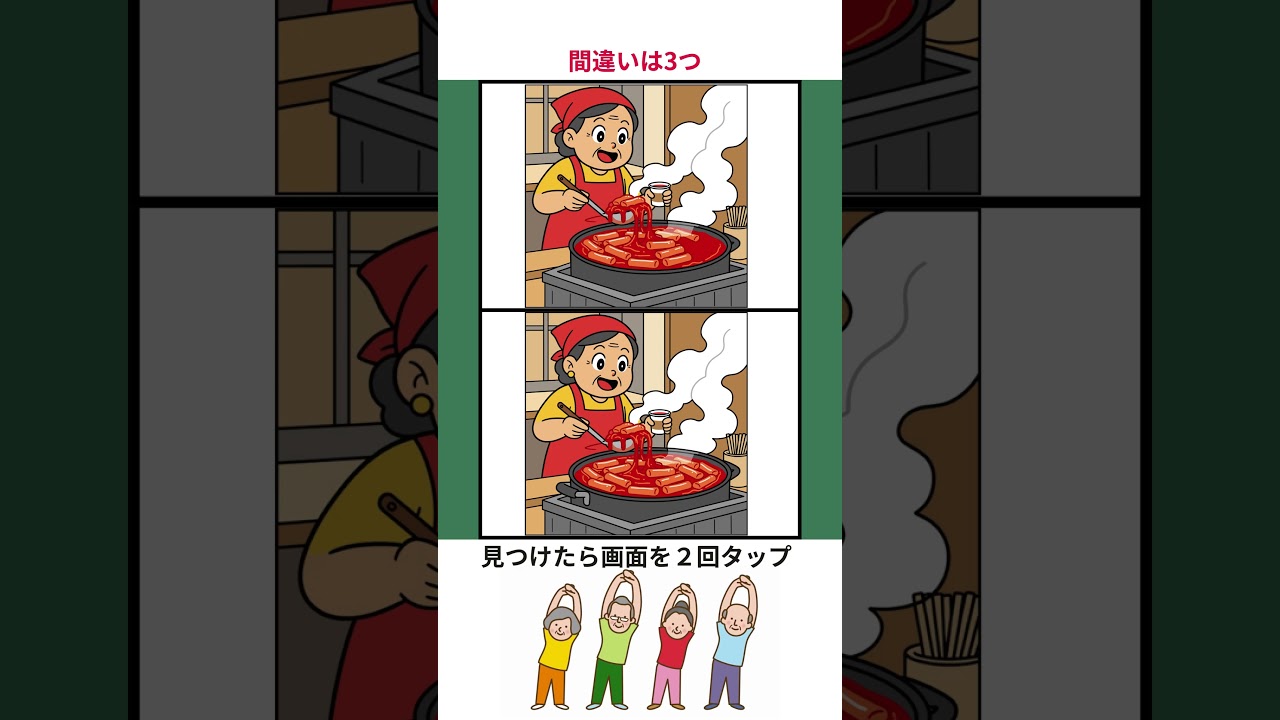 【間違い探し】高齢者 脳トレクイズ 韓国の名物と文化|楽しく頭の体操で脳活!#間違い探し #脳トレ #高齢者クイズ #頭の体操 #韓国 #脳活 #介護レク 他チャンネルの間違い探し Twitter Facebook はてブ Pocket LINE コピー 2025.10.27 2025.10.26 🧠💡韓国の人気料理や文化をテーマにした【間違い探し】脳トレクイズ! キムチ・ビビンバ・韓服・屋台グルメなど、韓国の魅力満載の全10問。 シニア・高齢者向けの頭の体操として、認知症予防や介護レクにもぴったりです✨ 🗣️コメントで教えてください! あなたの好きな韓国料理や思い出は?😊
