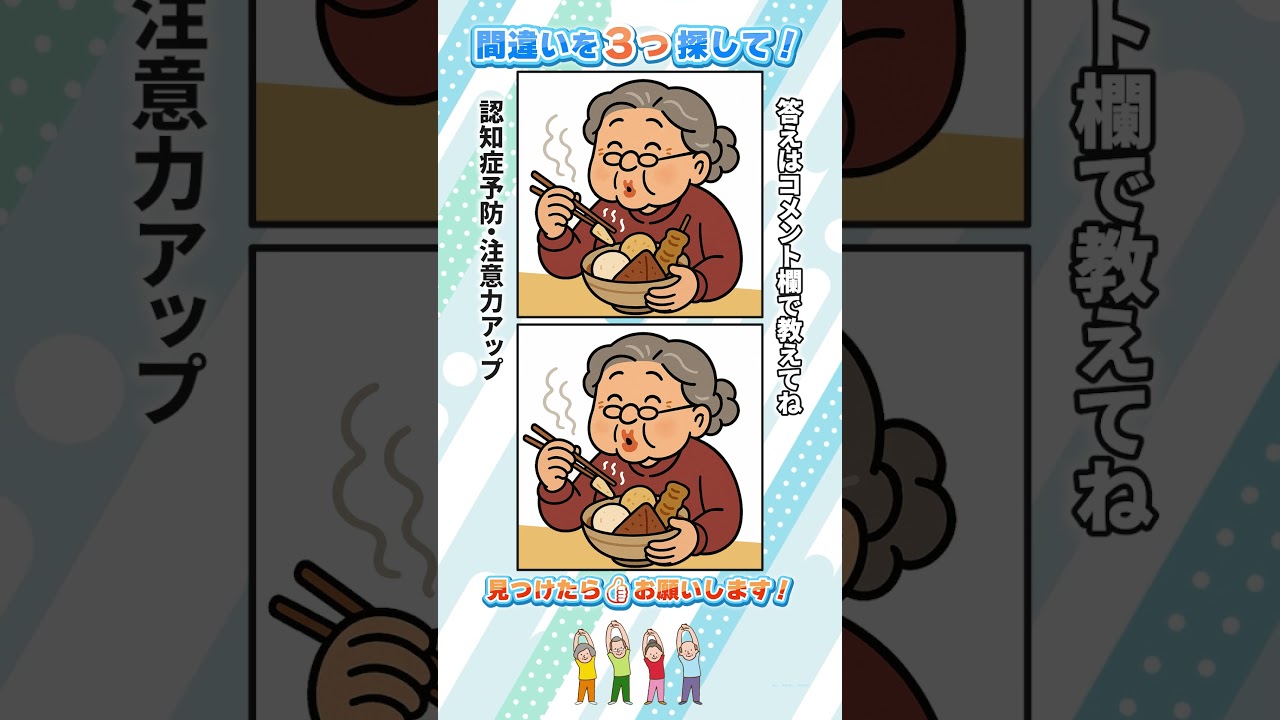 間違い探しで認知症予防!集中力と注意力アップ!#間違い探し #脳トレ #findthedifference 他チャンネルの間違い探し Twitter Facebook はてブ Pocket LINE コピー 2025.10.29 2025.10.28 答えはコメントで教えてね! ▶️ 楽しんでもらえましたら、イイネ👍チャンネル登録よろしくお願いします! VOICEVOX:ずんだもん