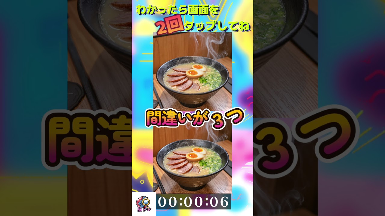 3つの間違い全部わかるかな?【間違い探し|ラーメン🍜】