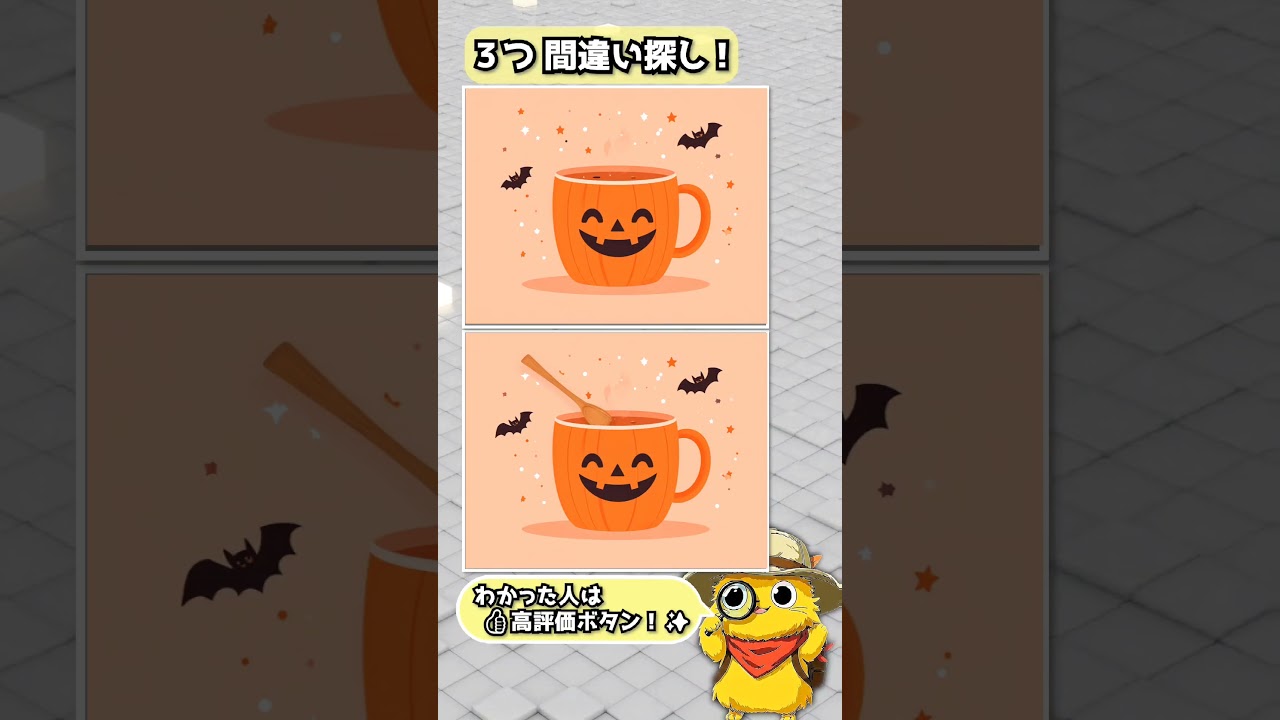 【脳トレ】かぼちゃスープキャラで3つ間違い探し!🎃 他チャンネルの間違い探し Twitter Facebook はてブ Pocket LINE コピー 2025.10.31 2025.10.30 今日の間違い探しは「かぼちゃスープキャラ」🎃 あたたかい秋の雰囲気の中に3つの違いがあるよ! 全部見つけられるかな?👀✨ わかった人は高評価ボタンをタップしてね👍 #間違い探し #脳トレ #知育 #大人の暇つぶし #秋のクイズ #かわいいキャラ #癒し動画