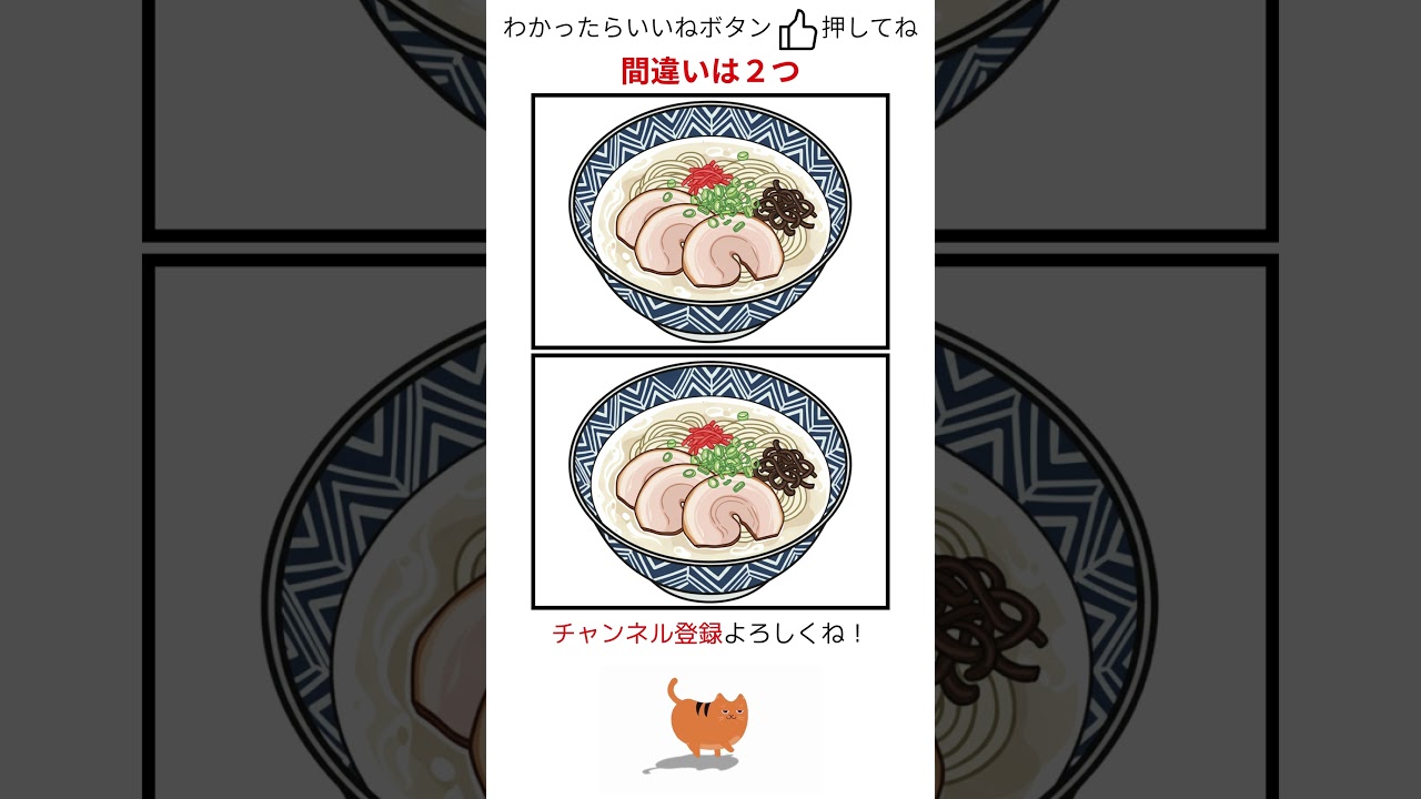 【まちがいさがし86 とんこつラーメン】#shorts #脳トレ #間違い探し 他チャンネルの間違い探し Twitter Facebook はてブ Pocket LINE コピー 2025.11.01 2025.10.31 よ〜く見ると…あれ?何かちがう? 上下のイラストを見比べて、間違いを見つけてみよう! 📺 チャンネル登録&いいねもお忘れなく! #間違い探し #脳トレ #高齢者 #60代 #70代 #認知症予防
