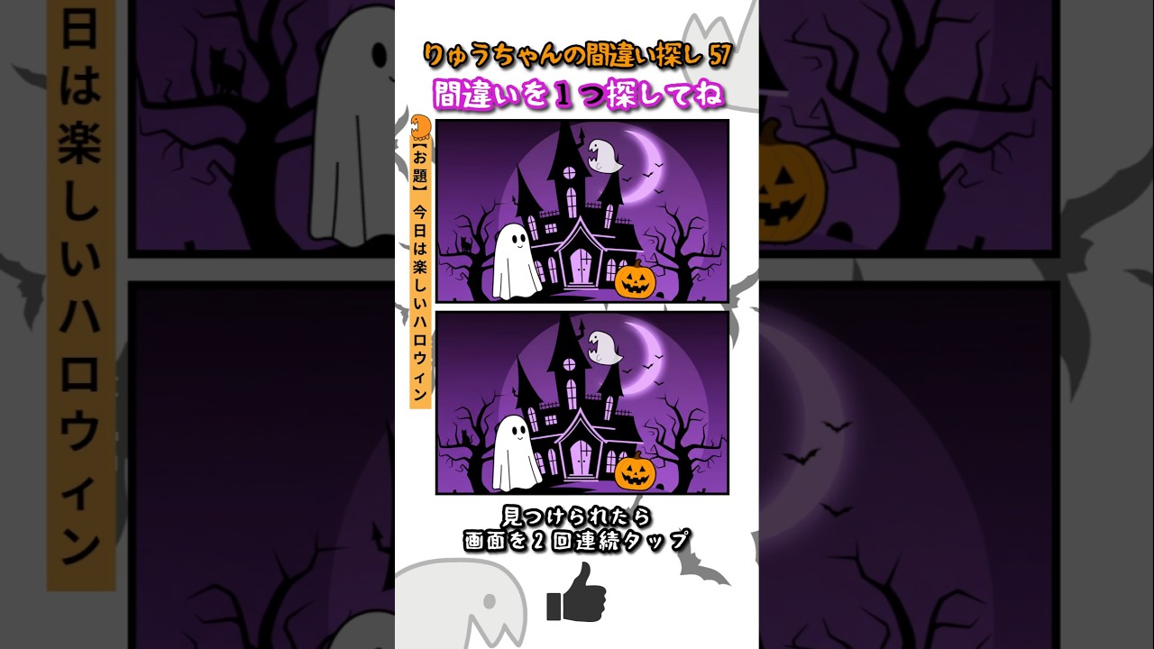 りゅうちゃんの間違い探し57【ハロウィンVer.】 #間違い探し #脳トレ #ハロウィン 他チャンネルの間違い探し Twitter Facebook はてブ Pocket LINE コピー 2025.11.01 2025.10.31 りゅうちゃんの間違い探し57です。 今回の間違い探しはハロウィン仕様です。いつもと違う感じをお楽しみください♪ 余談ですが、前回の56で登場したハロウィンの日を間違えたおばけが当日に再登場!