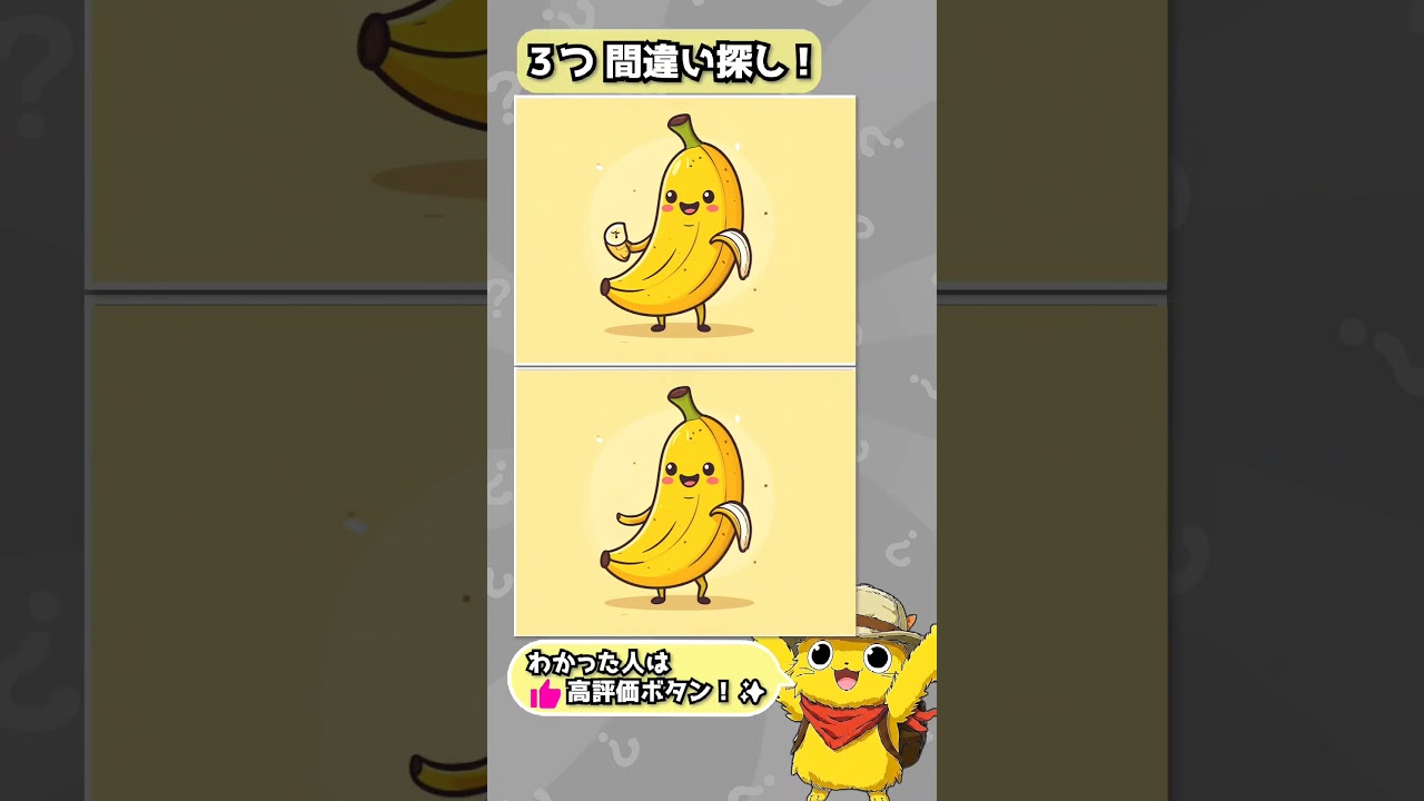 【脳トレ】バナナキャラで3つ間違い探し!笑顔になれる癒しの脳トレ🍌
