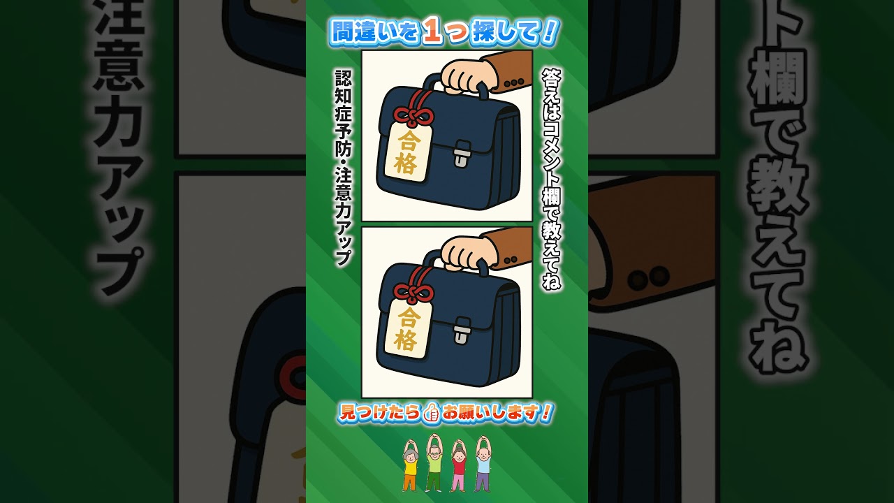 間違い探しで認知症予防!集中力と注意力アップ!#間違い探し #脳トレ #findthedifference 他チャンネルの間違い探し Twitter Facebook はてブ Pocket LINE コピー 2025.11.10 2025.11.09 答えはコメントで教えてね! ▶️ 楽しんでもらえましたら、イイネ👍チャンネル登録よろしくお願いします! VOICEVOX:ずんだもん