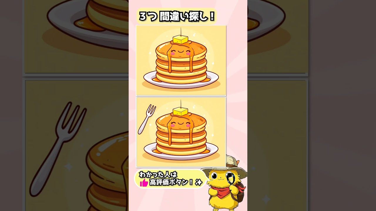 【脳トレ】パンケーキキャラで3つ間違い探し!あま〜い癒しの脳トレタイム🥞 他チャンネルの間違い探し Twitter Facebook はてブ Pocket LINE コピー 2025.11.11 2025.11.10 🥞ふわふわパンケーキキャラで3つの間違いを探そう! 見つけた瞬間スッキリ気分✨かわいく脳トレできる人気シリーズです🧠 あなたは何秒で見つけられる?⏳ 📅毎日20時に新作公開中! 🔔チャンネル登録して次の問題も挑戦してね!