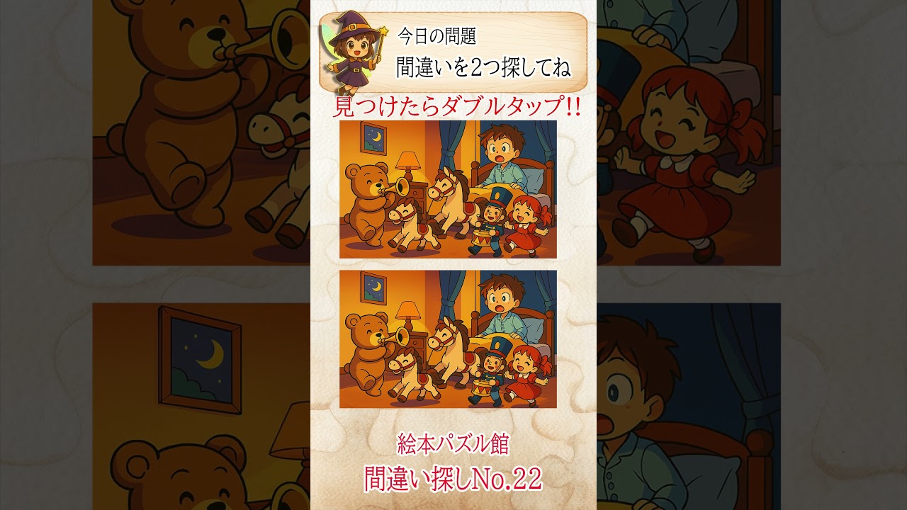 【間違い探しNo.22】絵本パズル館 2つの違いを見つけられる?👀🧩 #間違い探し #クイズ #脳トレ #findthedifference #クイズ #脳セラピー 他チャンネルの間違い探し Twitter Facebook はてブ Pocket LINE コピー 2025.11.13 2025.11.12 絵本パズル館へようこそ🧩 この動画の間違いは全部で2つ!あなたは全部見つけられる? 見つけた人はコメントで教えてね👇#間違い探し #クイズ #脳トレ #findthedifference #クイズ #脳セラピー