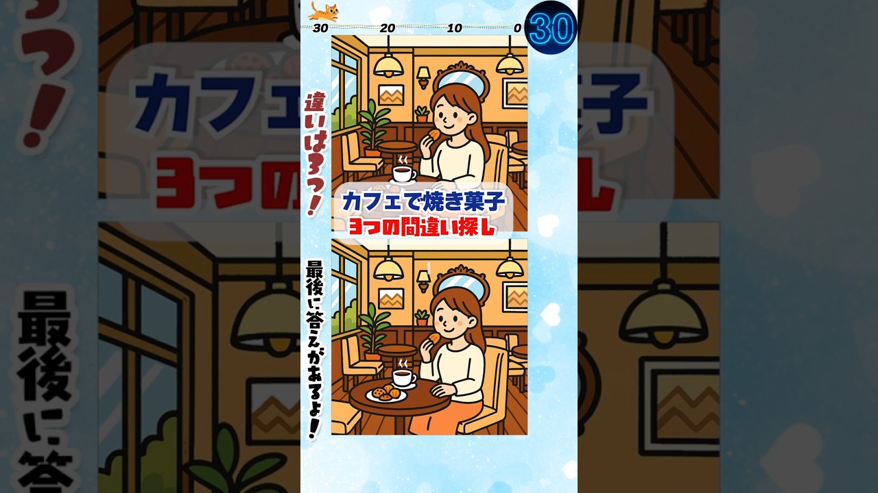 🕧30秒【間違い探し】焼き菓子を楽しむ女性<脳トレクイズ> 他チャンネルの間違い探し Twitter Facebook はてブ Pocket LINE コピー 2025.11.26 2025.11.25 レトロな喫茶店で、焼き菓子を楽しむ女性のイラストです。 3つの違いを見つけて、楽しく脳トレしましょう✨ 📅 【 更新情報 】 長編動画:週5回(18:00) ショート動画:毎日(17:00 他) #shorts #脳トレ #仲間外れ #違う絵探し #仲間外れクイズ #難問 #暇つぶし ※動画のイラストは、AIツールを使用し、制作者が制作・編集したオリジナル作品です。
