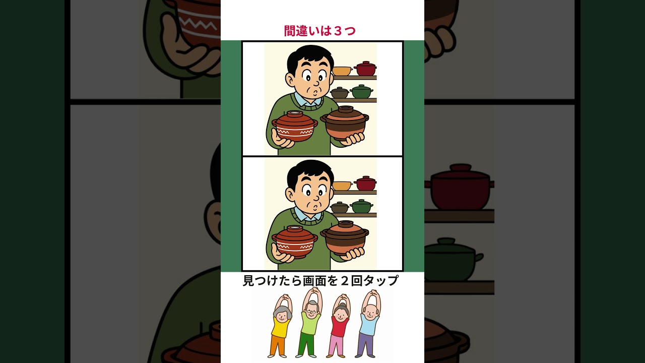 【間違い探し】高齢者 脳トレクイズ ランダム日常10問|シニアの頭の体操に最適な脳活ゲーム#間違い探し #クイズ #spotthedifferencegam #spotthedifference 他チャンネルの間違い探し Twitter Facebook はてブ Pocket LINE コピー 2025.11.29 2025.11.28 本日はテーマなしの「ランダム日常」を題材にした、楽しい【間違い探し 脳トレクイズ】日常風景、食べ物、家族時間、学校生活、伝統文化など、幅広いジャンルのイラストから間違いを探すことで、シニアの方でも楽しく脳を活性化できる構成になっています。