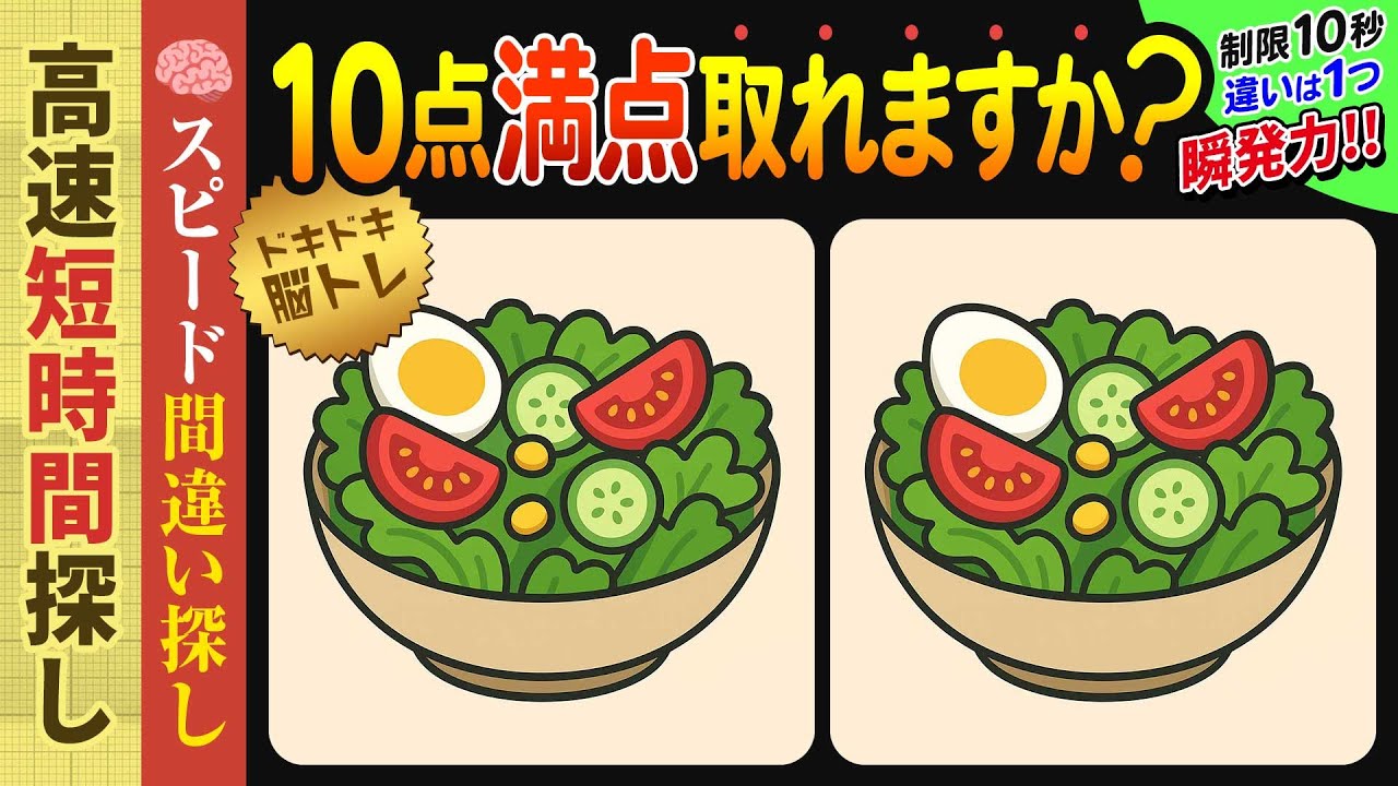 【スピード間違い探し】制限時間10秒の高速版。短時間で脳をシャキッと!パッと見て、サッと脳トレ10問