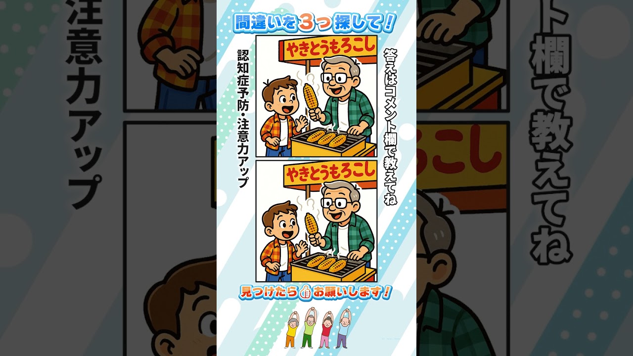 【間違い探しクイズ】Cozy Spot the Difference 老化予防に!高齢者向け脳トレ【集中力アップ!】#脳トレ #認知症予防 他チャンネルの間違い探し Twitter Facebook はてブ Pocket LINE コピー 2025.12.01 2025.11.30 答えはコメントで教えてね! ▶️ 楽しんでもらえましたら、イイネ👍チャンネル登録よろしくお願いします! VOICEVOX:ずんだもん #高齢者 #クイズ #cozygames #findthedifferences