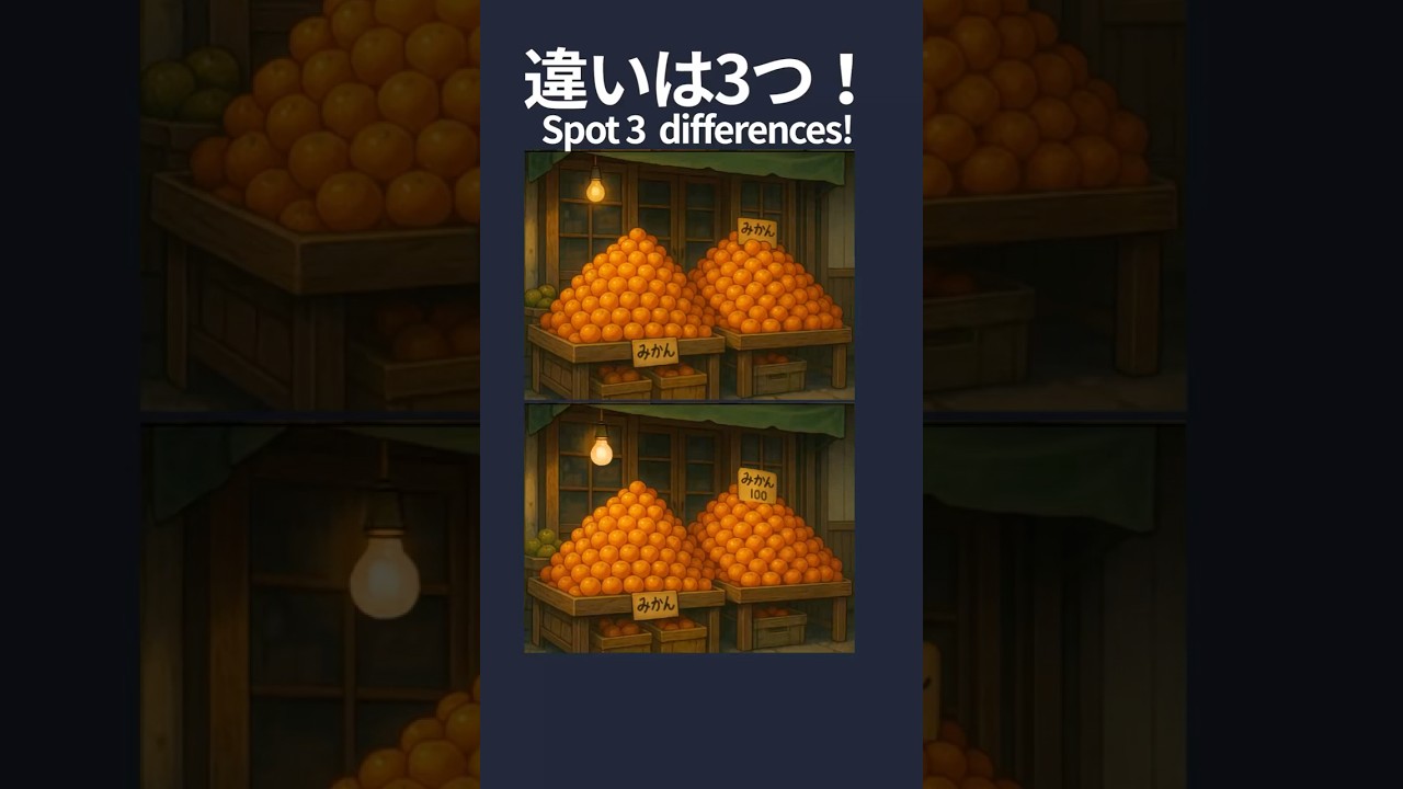 🍊3つ見つけられる?みかん山の間違い探し! 他チャンネルの間違い探し Twitter Facebook はてブ Pocket LINE コピー 2025.12.02 2025.12.01 観察力と集中力アップで脳トレしよう🧠✨癒しの昭和レトロ八百屋🍊懐かしい夜#間違い探し #昭和レトロ#trainyourbrain
