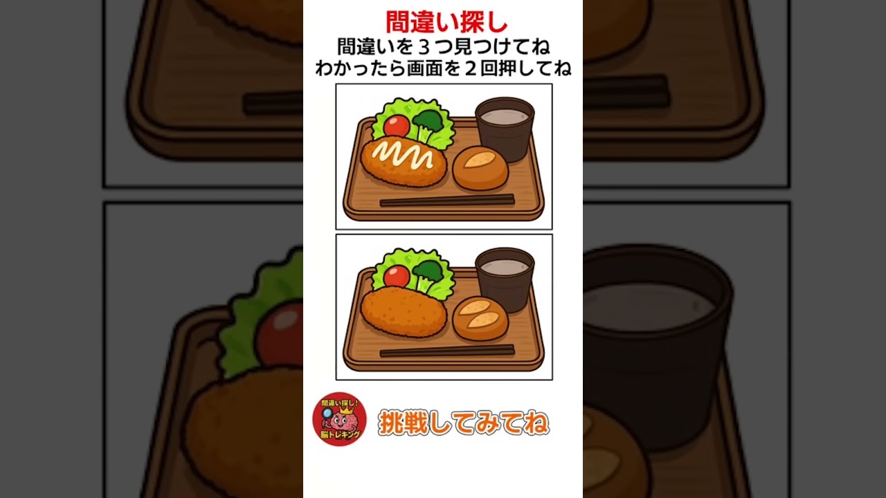 からあげ定食の間違い探し脳トレクイズ #間違い探し #脳トレ #クイズ #shorts #認知症予防 他チャンネルの間違い探し Twitter Facebook はてブ Pocket LINE コピー 2025.12.02 2025.12.01 記憶力と集中力を高めよう。認知症予防にもなるよ。