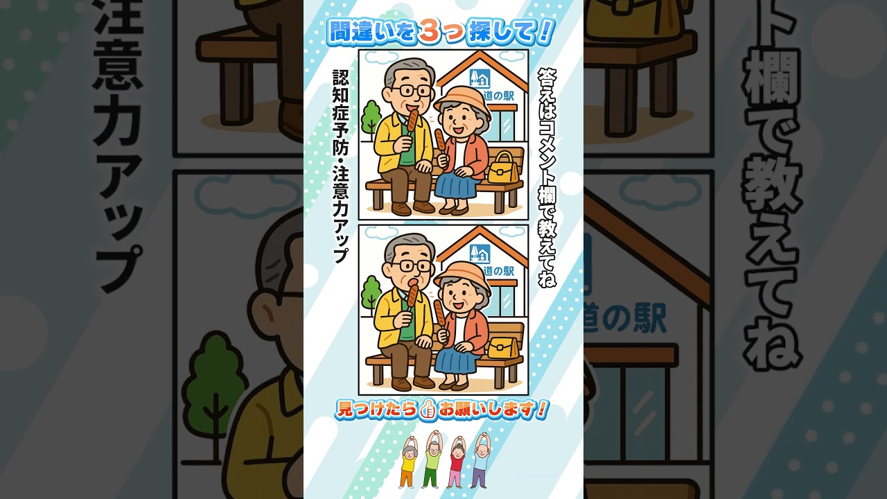 【間違い探しクイズ】Cozy Spot the Difference 老化予防に!高齢者向け脳トレ【集中力アップ!】 他チャンネルの間違い探し Twitter Facebook はてブ Pocket LINE コピー 2025.12.05 2025.12.04 答えはコメントで教えてね! ▶️ 楽しんでもらえましたら、イイネ👍チャンネル登録よろしくお願いします! VOICEVOX:ずんだもん