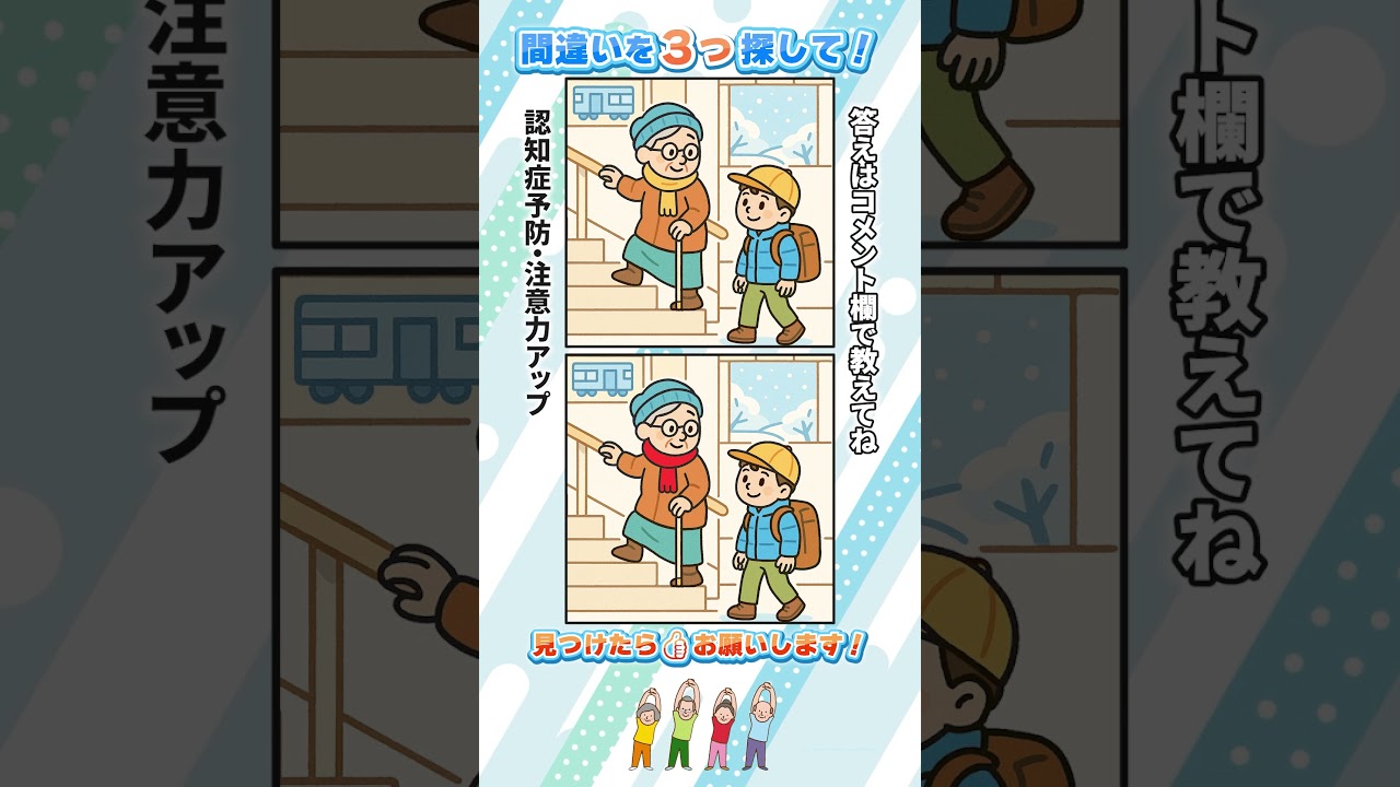 【間違い探しクイズ】Cozy Spot the Difference 老化予防に!高齢者向け脳トレ【集中力アップ!】 他チャンネルの間違い探し Twitter Facebook はてブ Pocket LINE コピー 2025.12.06 2025.12.05 答えはコメントで教えてね! ▶️ 楽しんでもらえましたら、イイネ👍チャンネル登録よろしくお願いします! VOICEVOX:ずんだもん