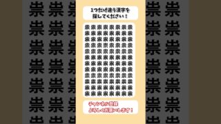 他チャンネルの間違い探し 間違い探し 違う漢字はどれ #shorts #脳トレ #間違い探し #クイズ チャンネル登録はコチラ↓ 今日も元気にレッツ脳トレ&[続きを読む] 2025.10.02 他チャンネルの間違い探し