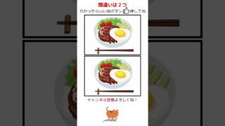 他チャンネルの間違い探し 【まちがいさがし57 ロコモコ丼】#shorts #脳トレ #間違い探し よ〜く見ると…あれ?何かちがう? 上下のイラストを見比べ[続きを読む] 2025.10.02 他チャンネルの間違い探し